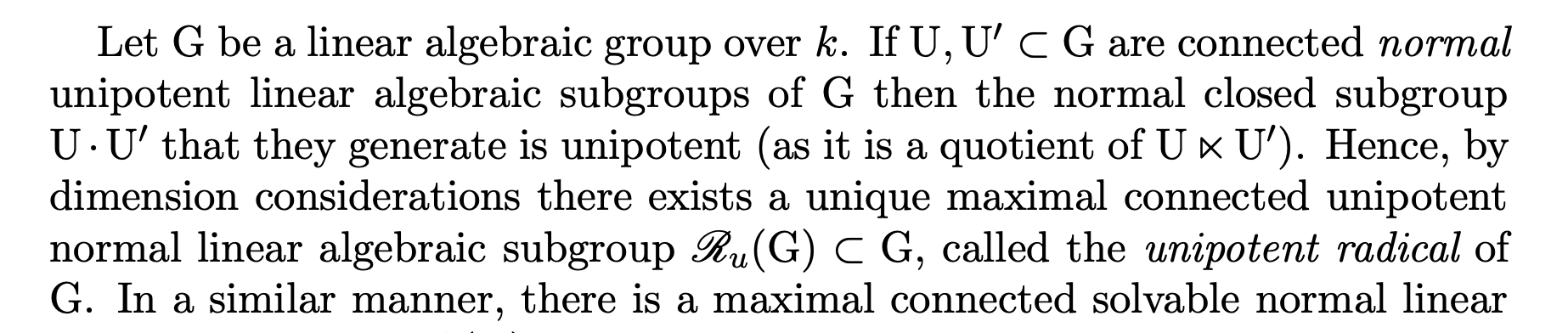 (p10 of the linked pdf above) and this will need a notion of dimension. The definition of unipotent is Def 1.1.5 (p8) with explanation of g_s and g_u above that.