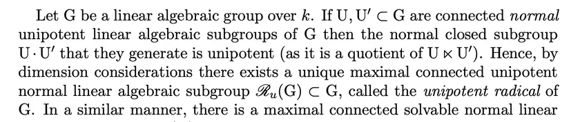 This means that one has to define unipotent radicals for smooth affine group varieties over an algebraically closed field. The definition in Conrad's notes is