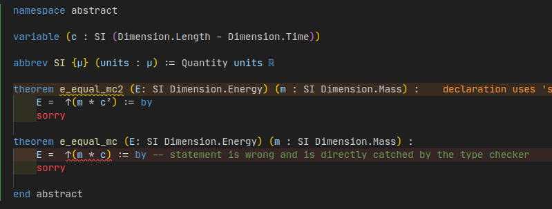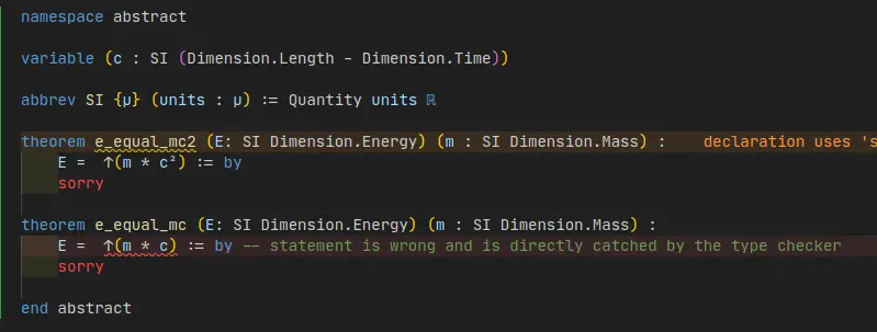 And obviously wrong statements are catched by the type checked that does dimensional analysis for us :