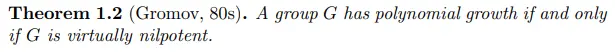 Thanks! I glanced at the statement (lemma theorem_1_2 : HasPolynomialGrowth G ↔ IsVirtuallyNilpotent G := showcased), but I don't see where it's assumed that G is finitely generated? (This is part of the trouble with just stating conjectures! The statements could be incomplete...) I see that it's baked into the definition of HasPolynomialGrowth, but that's not enough. E.g. the group is abelian (and hence IsVirtuallyNilpotent), but does not satisfy HasPolynomialGrowth..?