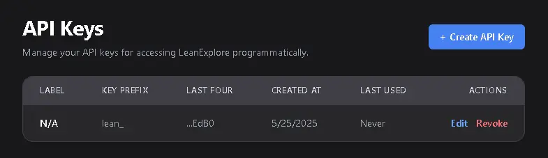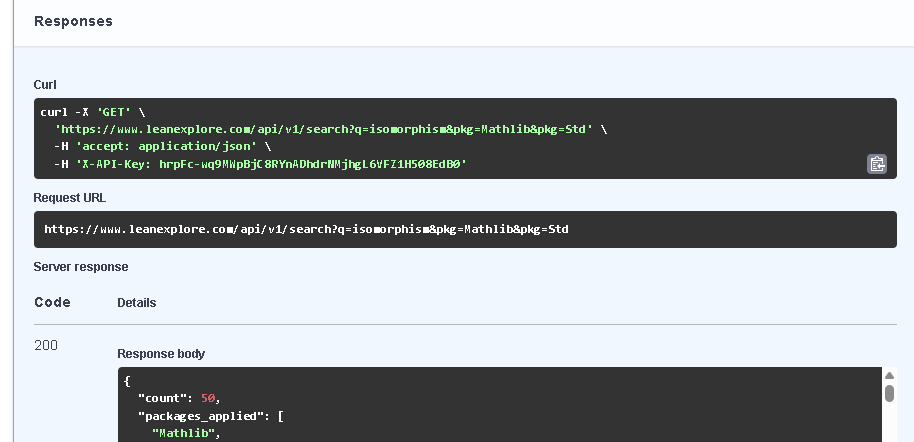 If you have any feedback, please let me know. I am still working on fine-tuning the search signal to give accurate results. I would be happy to add any features that people would like, such as keeping track of their search history, the ability to share specific results, VS code integration, or a dark mode. I also plan to keep the search engine up to date with the latest results from Mathlib, and add support for other repositories, such as the base Lean 4 library or PhysLean.
