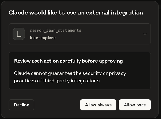 @Eric Taucher I presume what is being mentioned in the goal states that the LSP produces. This would not be a bad idea by itself, but since each Lean proof can admit a decent number of these, embedding them and then indexing them would be nontrivial. When you couple this with the requirement that I would like LeanExplore to run locally on peoples' machines (hence, why I am using a 110m parameter model), I did not think people would want to download a potentially 20gb database to do basic Lean querying (the DB is already a decent download size). This seems like a separate functionality which would be better suited as a standalone tool.