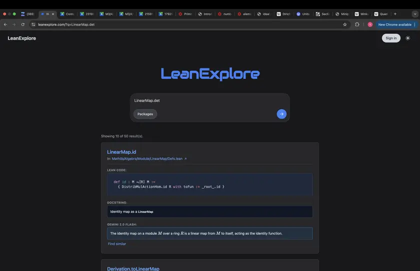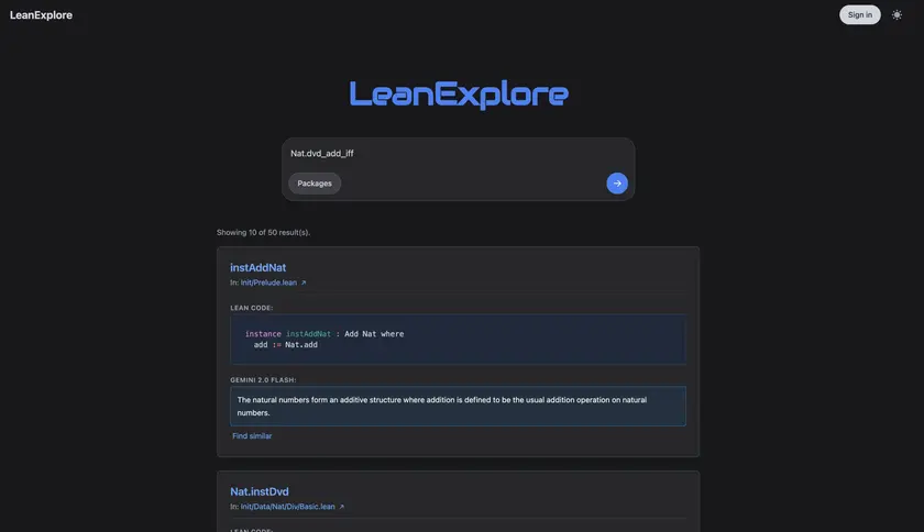 I am excited to share LeanExplore, a new Mathlib search engine that combines semantic search embeddings, AI-generated translations, and PageRank to give optimized search results.