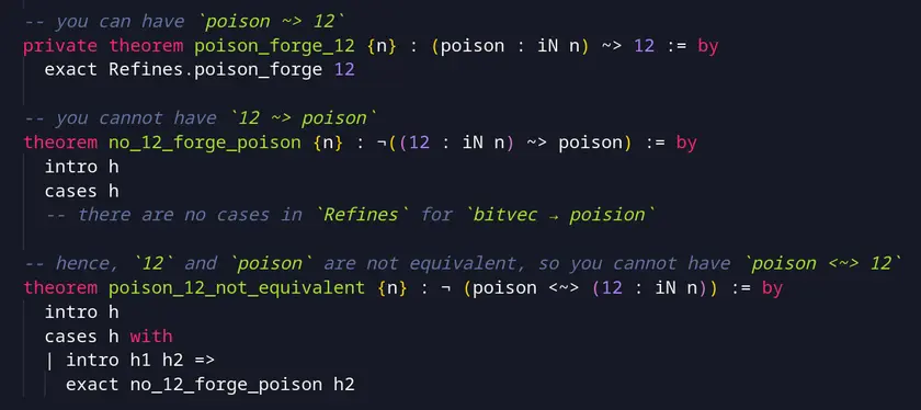 Not particularly related, just my own small project. I solved the problem though, I was thinking of rewrites completely wrong. A rewrite from x to y isn't an equivalence relation, it's more like a preorder. So you can have poision ~> 12, but you can't coerce 12 ~> poison. Example below: