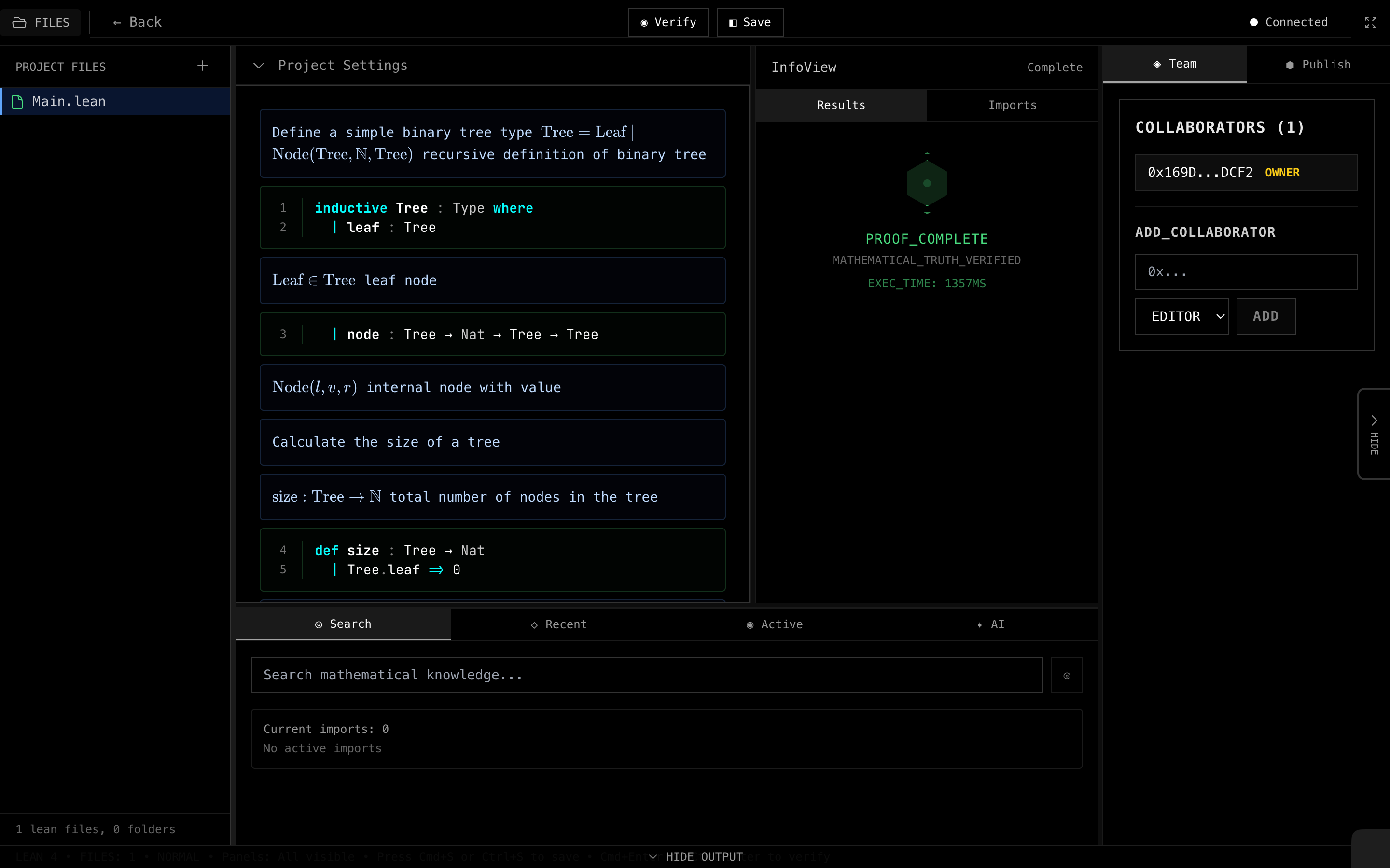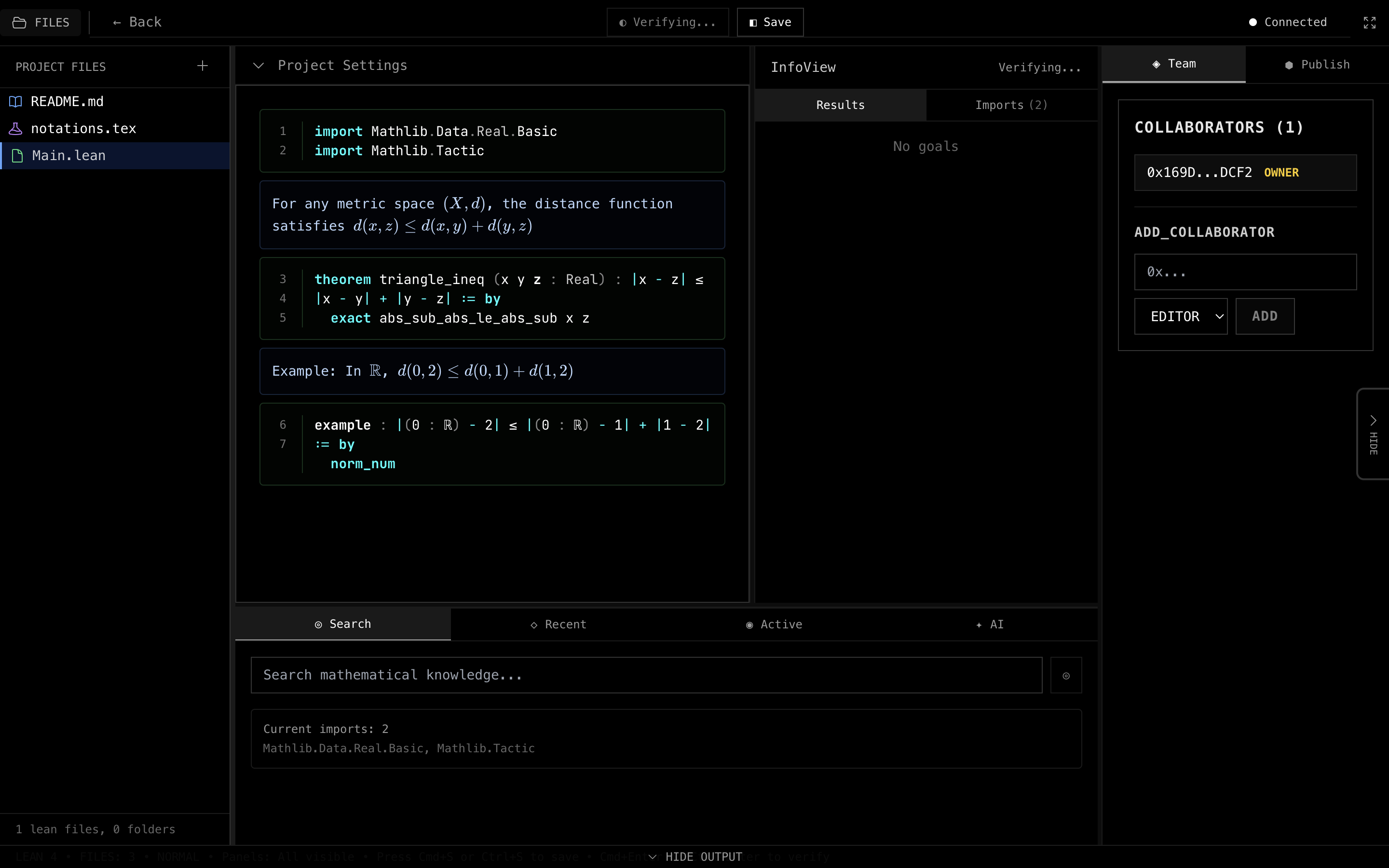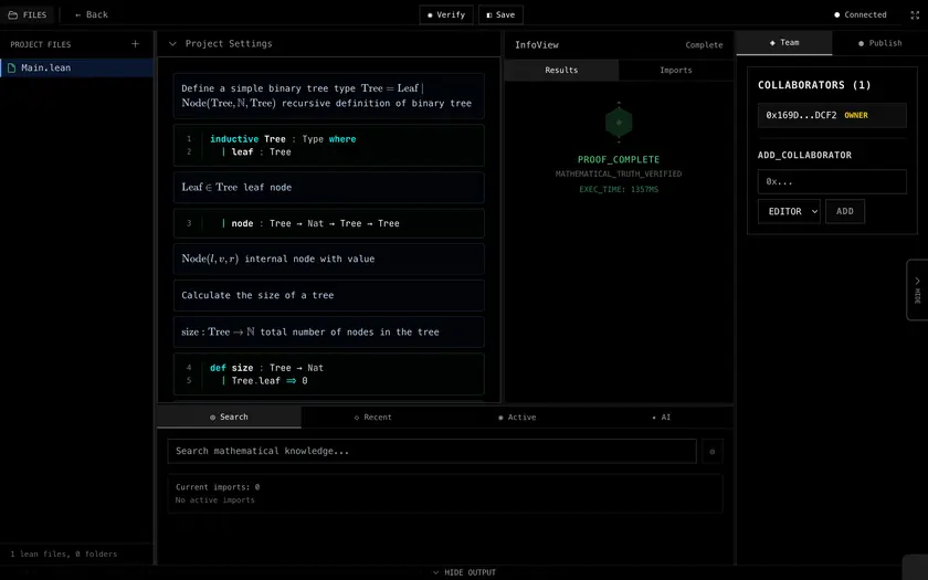 - Seamlessly mixing informal mathematical writing (LaTeX) with formal proofs (Lean)