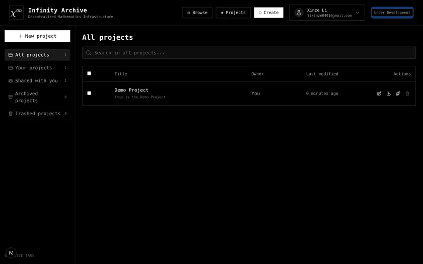 5 messages were moved here from #general > New Open Source Project: Infinity Archive - Lean4 Mathematic by Moqian.