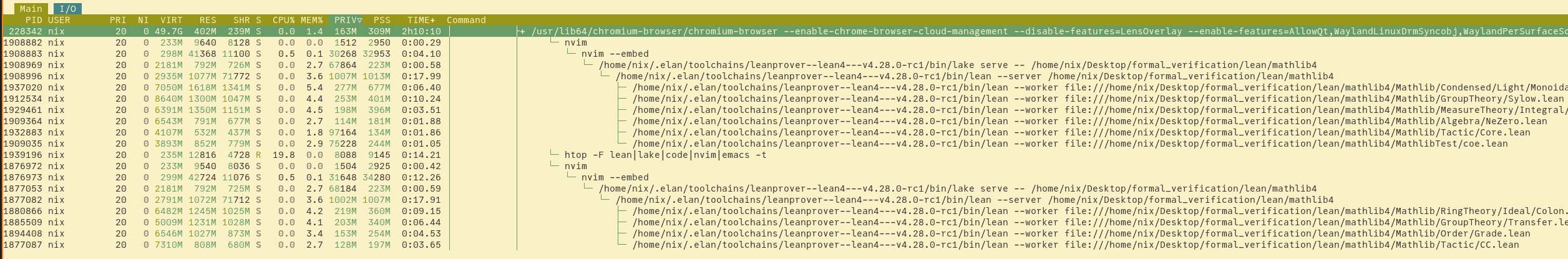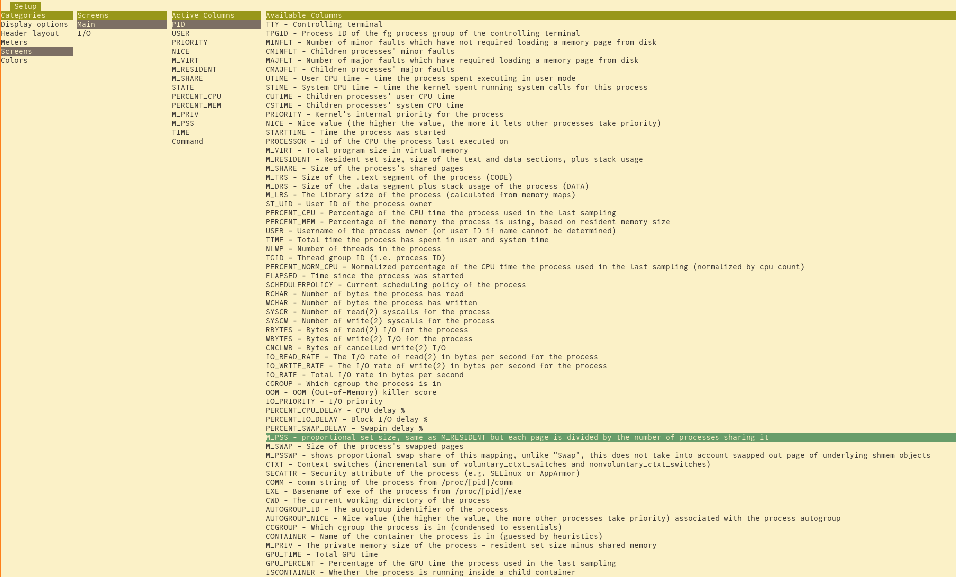 htopwith the following configuration:htop -F 'lean|lake|code|nvim|emacs' -tnow you need to set a few config options:-
