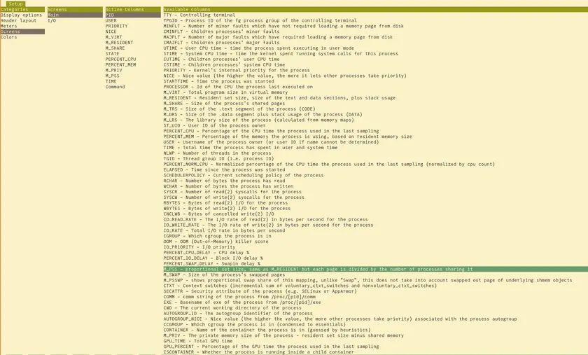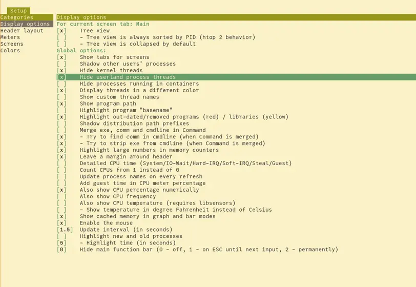 press f2 to go into setup, in display options make sure to set hide userland process threads: image.png