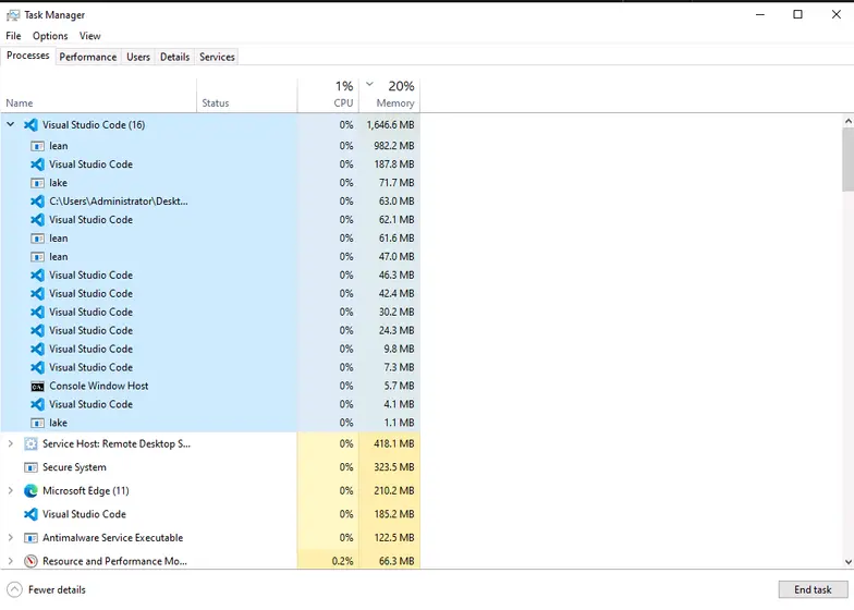 My (Windows) laptop has 16GB and it almost grinds to a halt when running even a single instance of lean