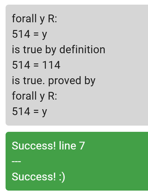 Here's a proof that the real number 114 is equal to the real number 514 in Litex:
