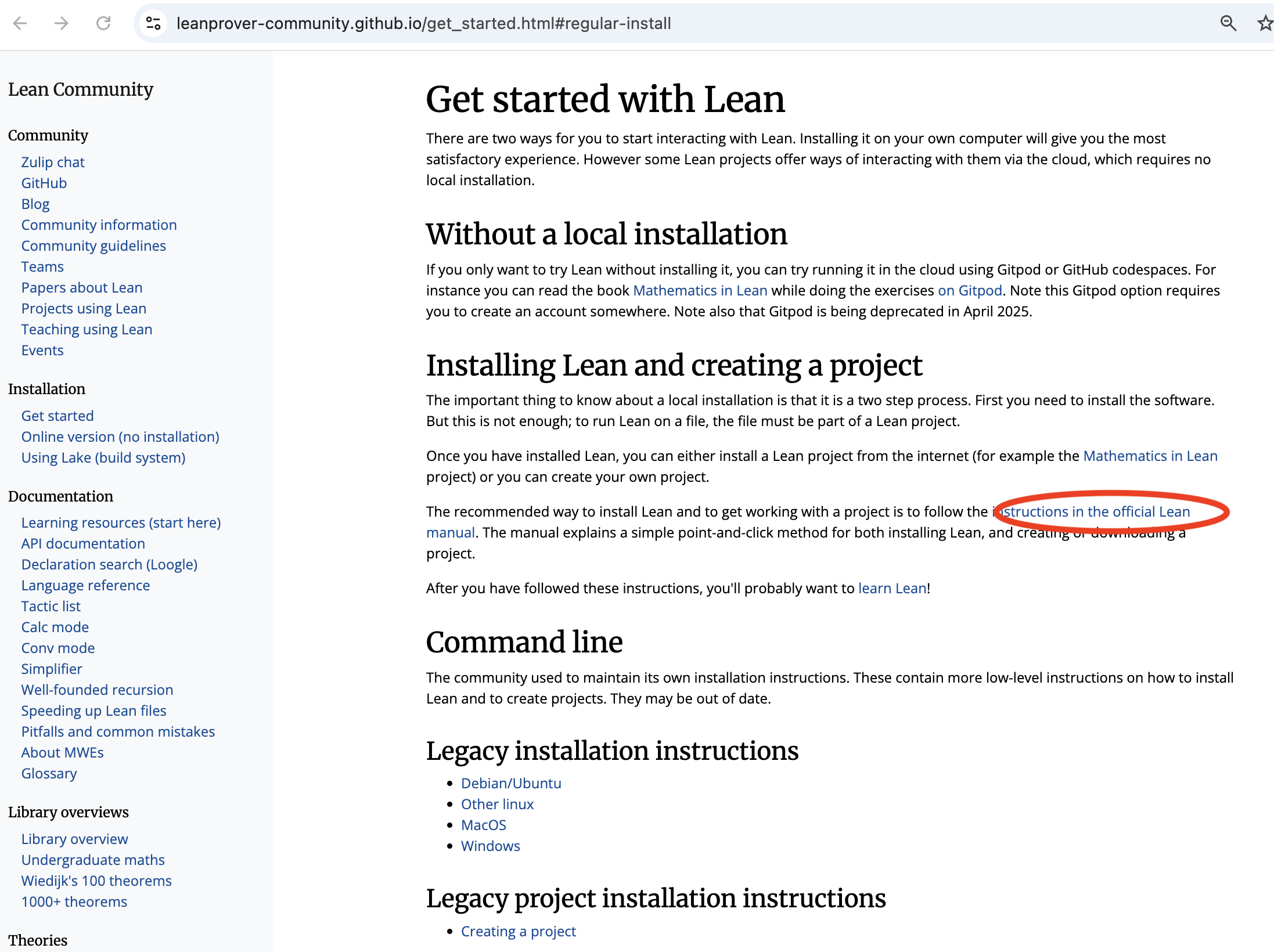 Papercut # 2: If you find the link to installation (bottom of last image), you land on this page. How quickly do your eyes go to the "instructions in the official Lean project"?