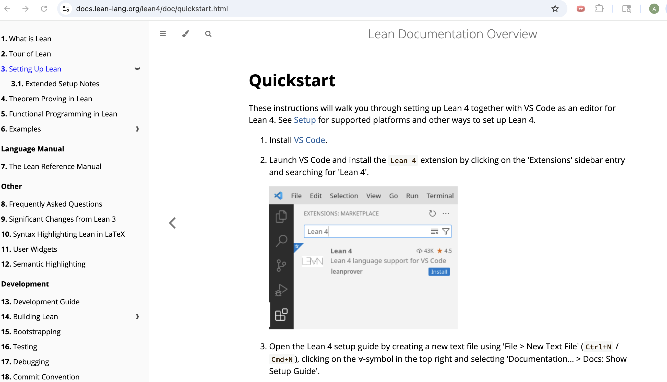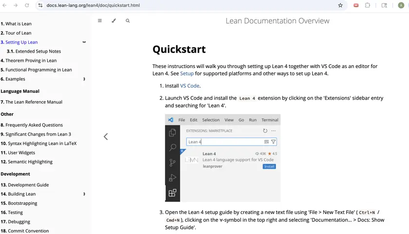 Papercut # 3: Now I've clicked three links, and the first step in the Quickstart is to... click another link (to download VSCode), and go to another page (which doesn't pop out in a new tab, so I've lost the leanprover page and will need to find it again when VSCode installation is done).