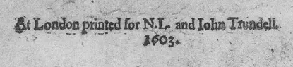 W. Shakespeare, "The Tragicall Historie of Hamlet, Prince of Denmarke", London, N.L. and John Trundell, 1603.