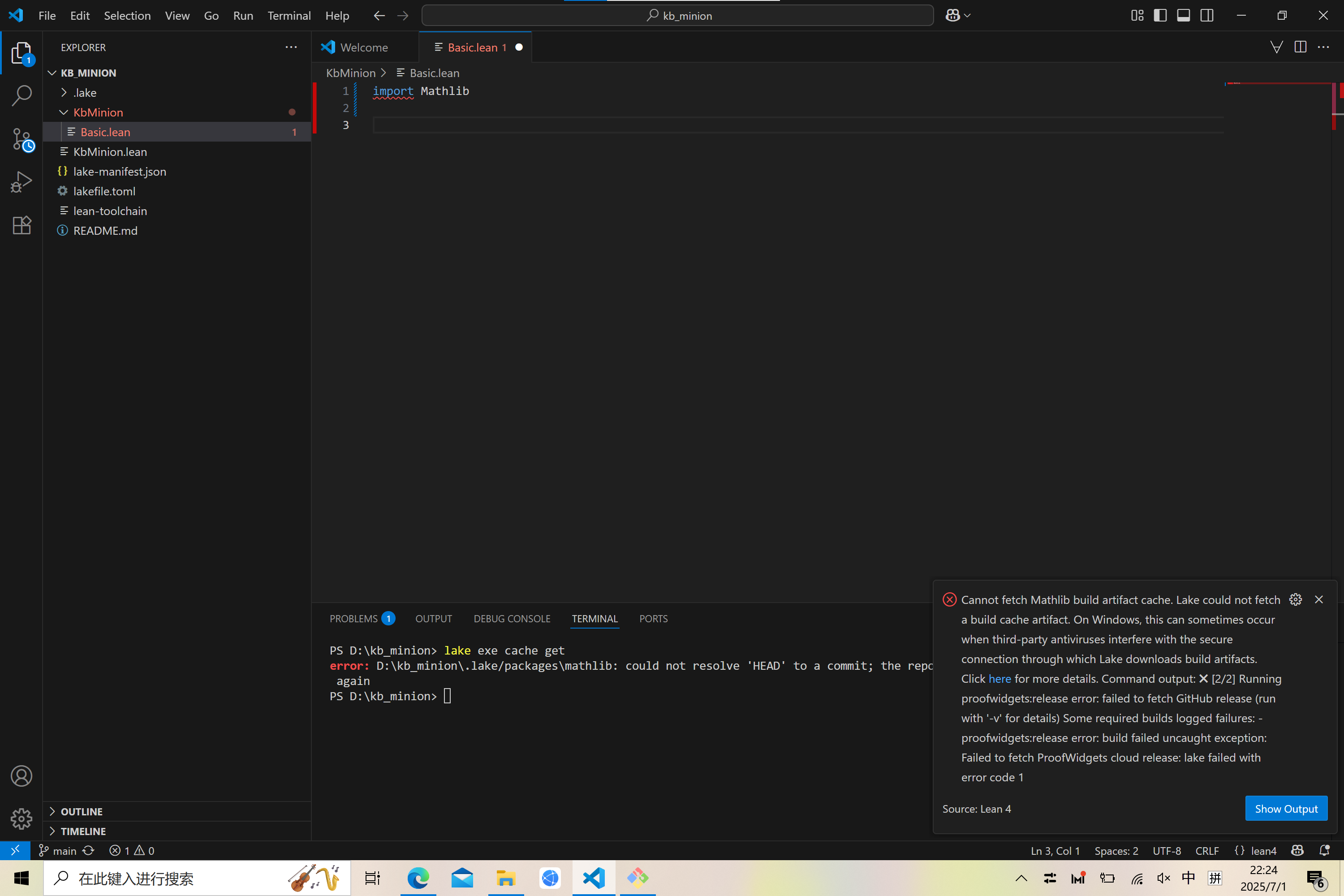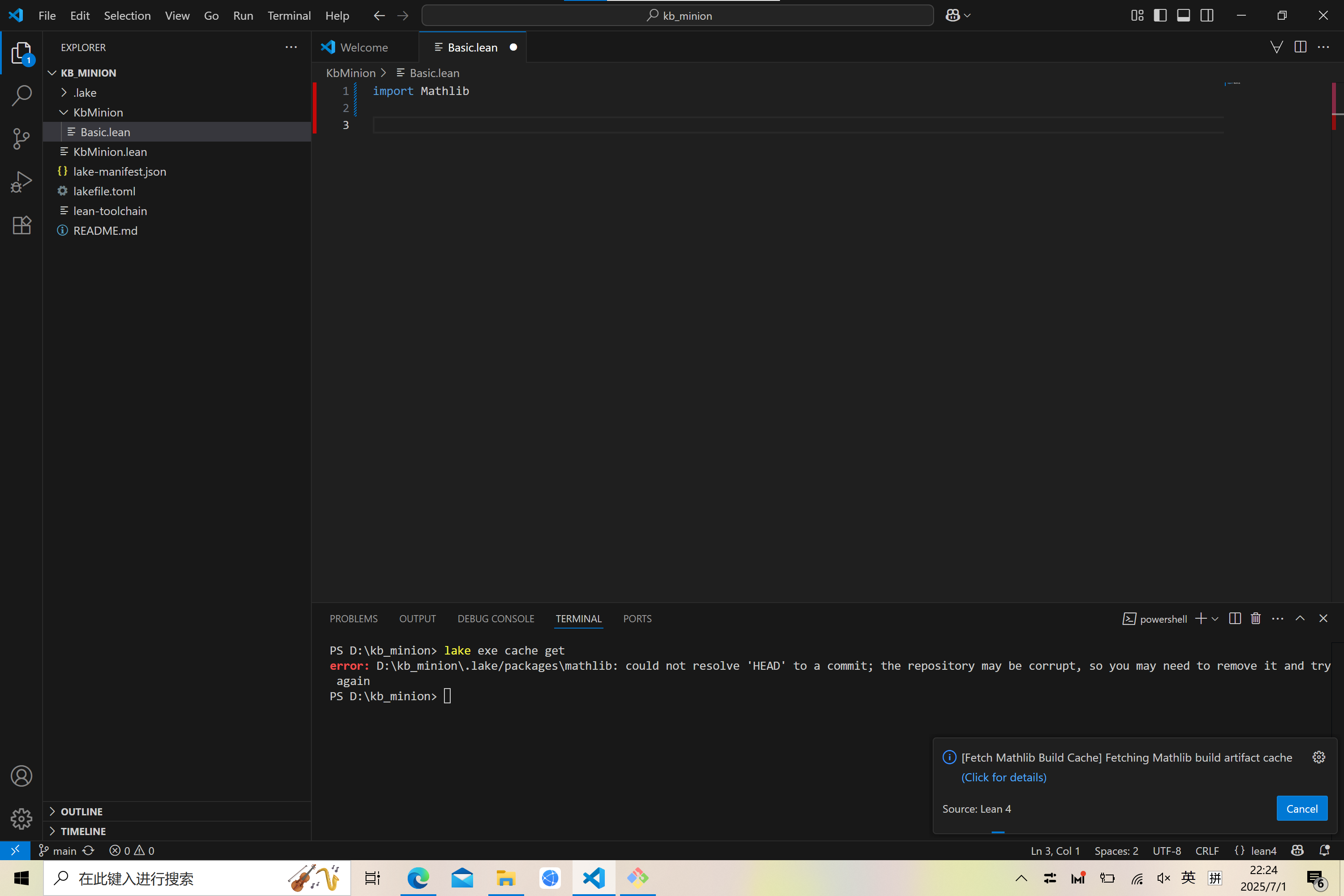 error: D:\kb_minion\.lake/packages\mathlib: could not resolve 'HEAD' to a commit; the repository may be corrupt, so you may need to remove it and try again