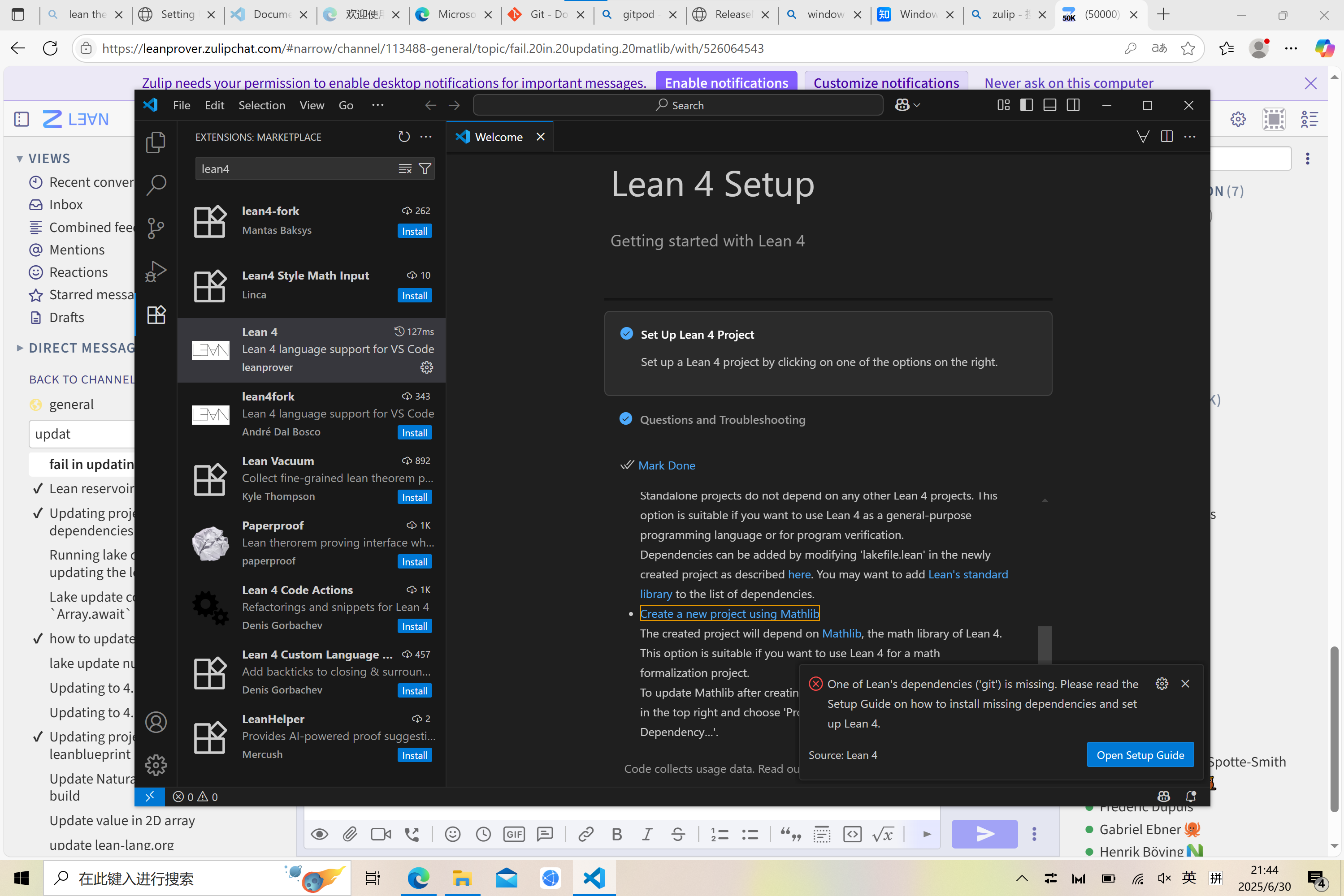 This user still cannot install Lean + mathlib on their Windows laptop and they're supposed to be starting a project with me on Monday.