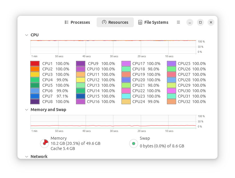 In System Monitor I see all CPU cores are utilized most of the time: