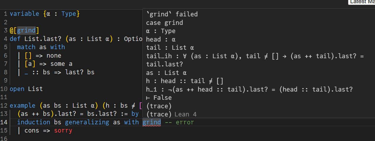 fun_induction last? bs generalizing as with grind -- error