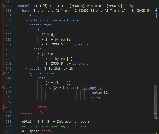 you should state you induction goal like ∀ n, s (2 * n) ≡ 2 [ZMOD 5] ∧ s (2 * n + 1) ≡ 3 [ZMOD 5]