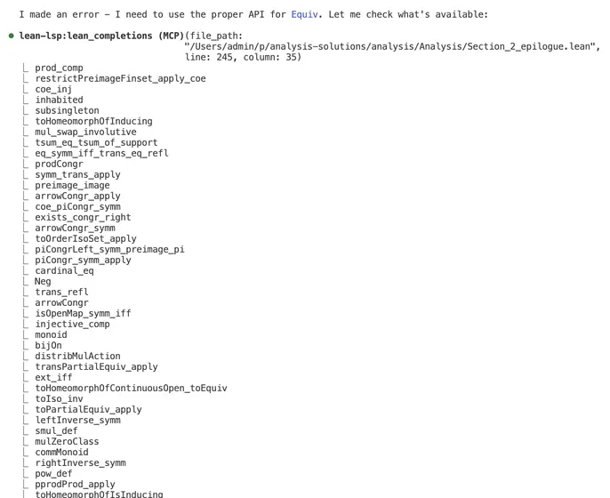 Maybe there's an MCP/LSP setup that works with Lean?