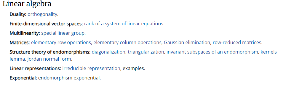 Some concepts have names of definitions or theorems, others just a wikipedia link