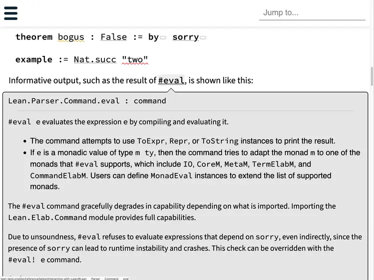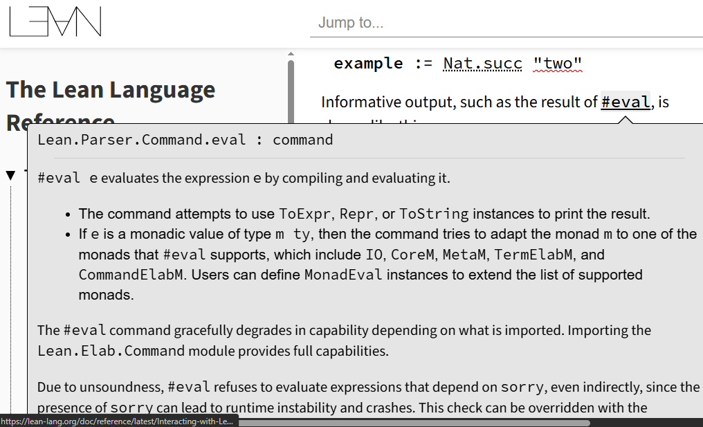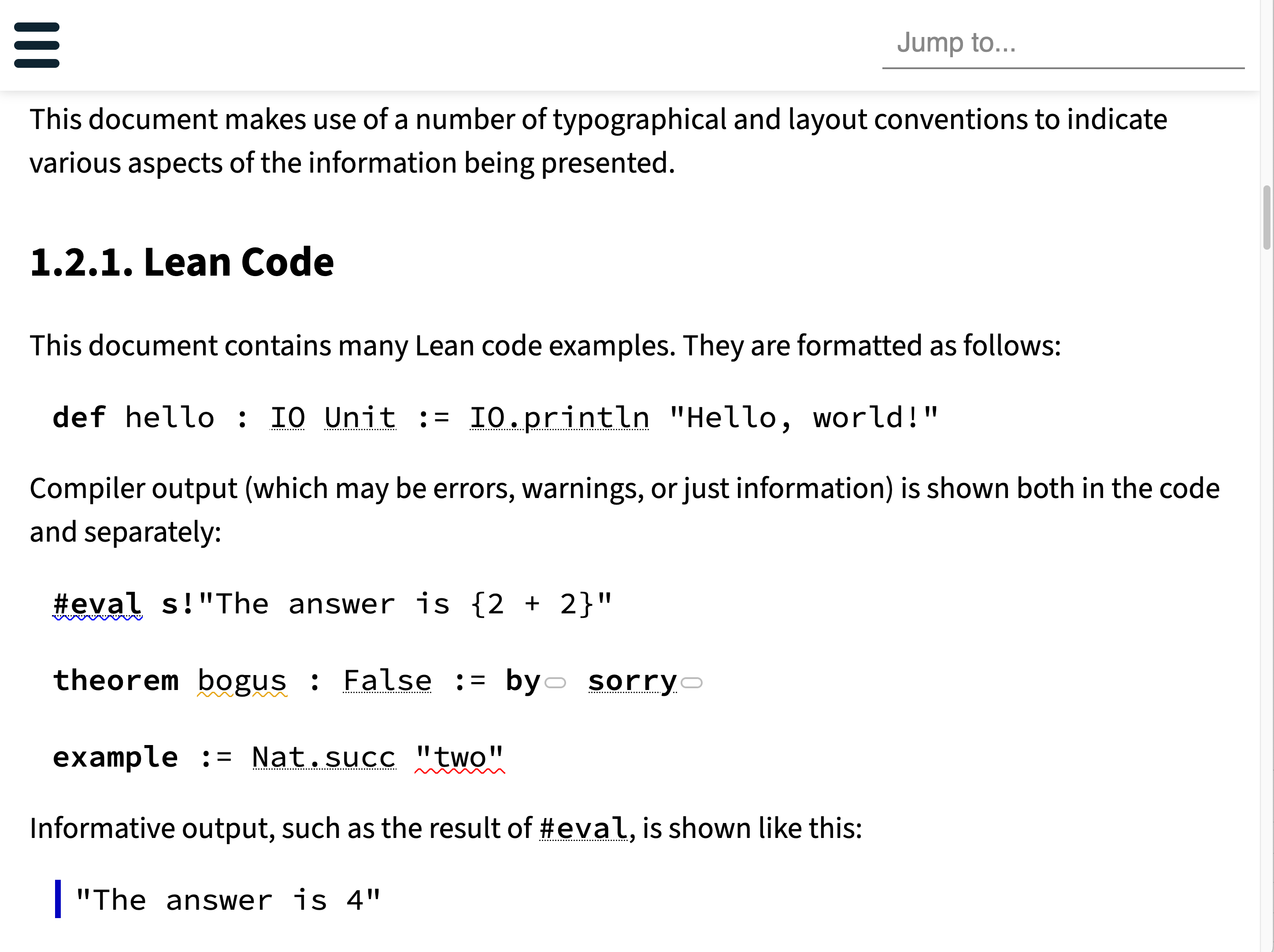 I'm not sure I understand. Does the Lean reference really only exist in this custom file format, which can be read only by this unfinished piece of software, which requires knowledge of Lean to use? And has no export features, compatibility with other document formats, accessibility options, and so on? Baffling, if so. Thanks.