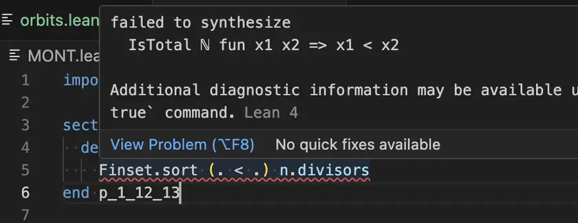 I initially tried using Finset.sort Nat.lt n.divisors but I get the error "failed to synthesize DecidableRel Nat.lt". I also considered defining recursively, as the minimum of the set of divisors that are bigger than .