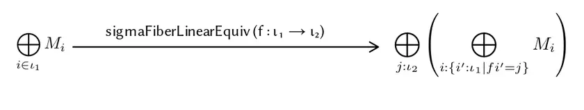 Given a direct sum indexed by ι₁ and a map f : ι₁ → ι₂, I want to rearrange the the terms into a double sum with the outer sum indexed by ι₂. That is, I want to construct an isomorphism that looks as follows: