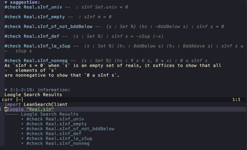 The slightly easier way which works both in VSCode and in lean.nvim is to use the nice LeanSearchClient API by Siddhartha Gadgil . If you type