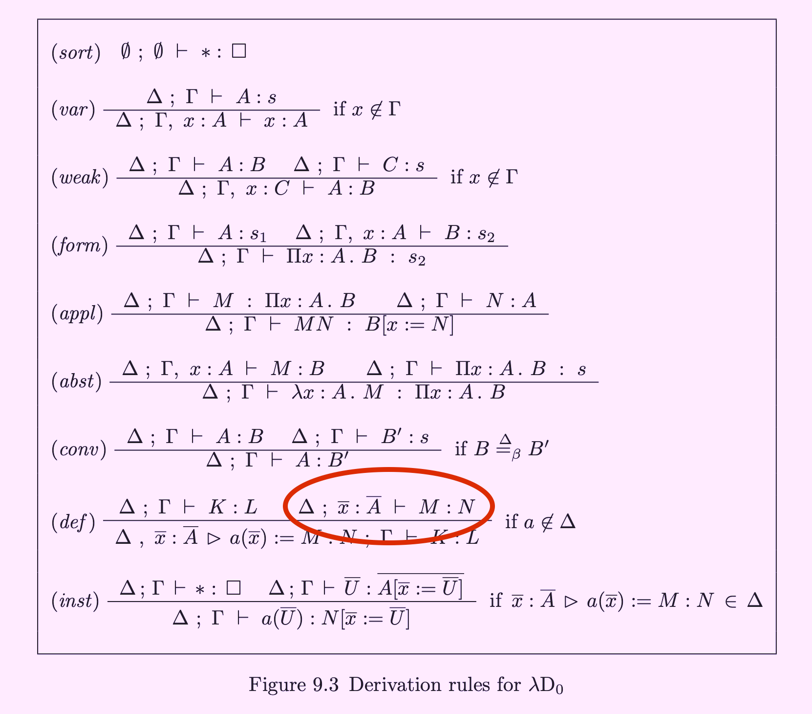 So it seems I can add any definition to an environment, using the (def) rule, which only imposes the requirement that the types of the variables in the definition parameter list can themselves be derived.