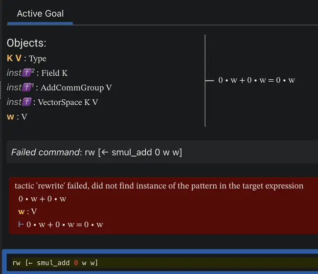 but the first 0 is in K and the second one is in ℕ, and now Lean is confused.