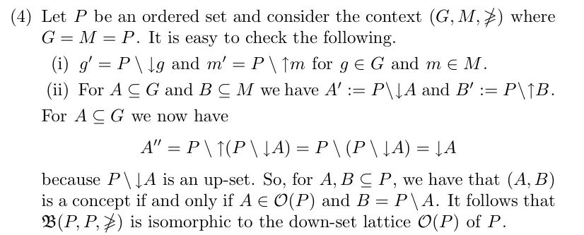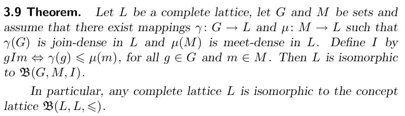 Which stated kind of another way, is: any complete lattice is the concept lattice of ≤ (so all complete lattices are isomorphic to a concept lattice).
