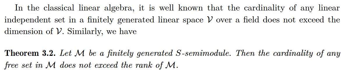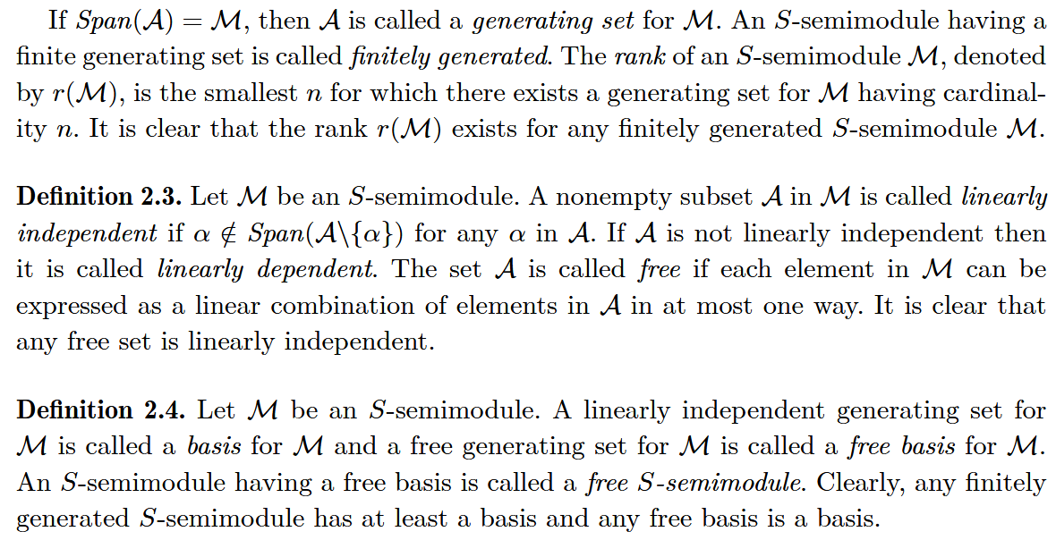 Topic: Linear independence over semirings