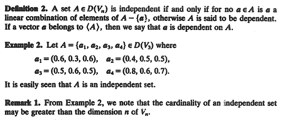 Golan: Definition of linear independence