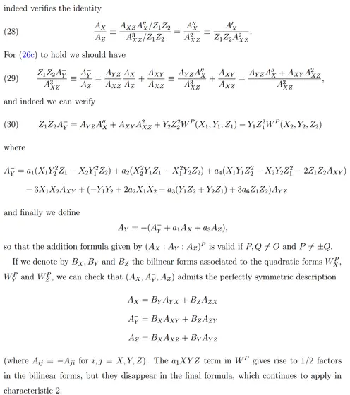 Thanks! The expression also appears as the second formula on p. 235 of Bosma--Lenstra. Our addition formula must be the same as their law corresponding to (0:1:0), i.e. those superscripted (2) on p. 237-238. Maybe our doubling formula is a specialization of their law corresponding to (1:0:0) (superscripted (1)). They didn't make the observation about bilinear forms though.