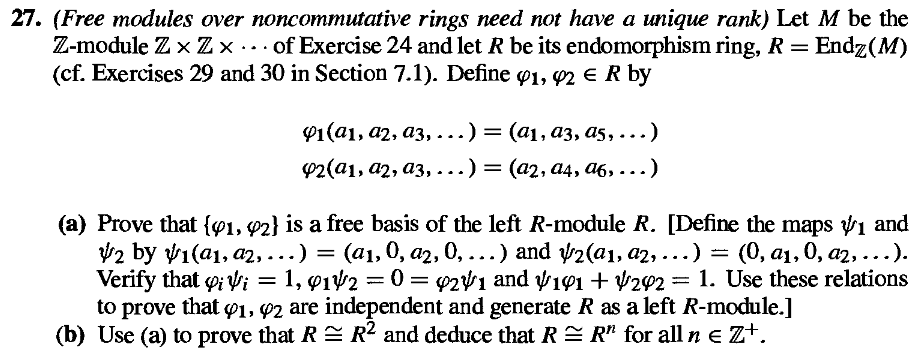 “R^n is usually said to be free of finite rank n for any semiring R” — I'm not sure how “usual” this is, because when R^n is isomorphic to, say, R^2n, one wouldn't say simultaneously that a module is free of rank n and 2n.