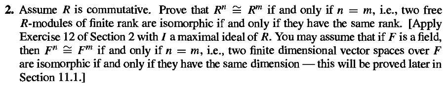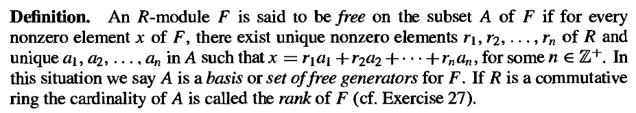 "Let M be a free module. Then any spanning set of size rk(M) forms a basis."