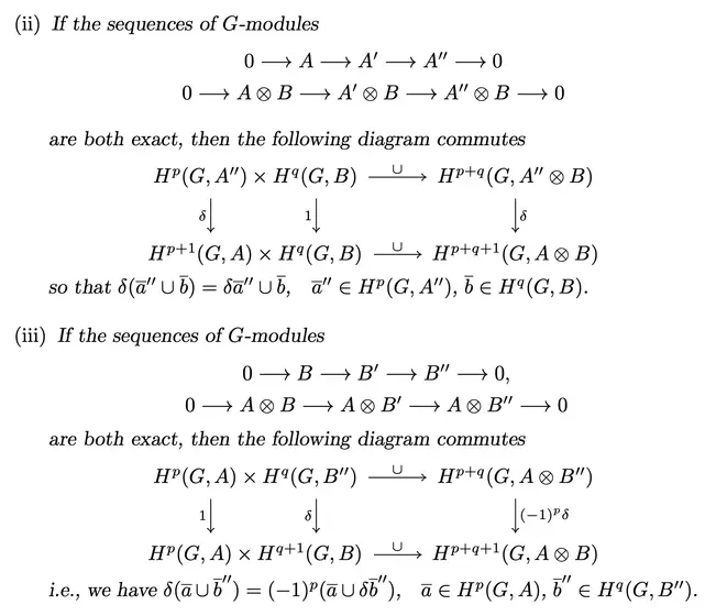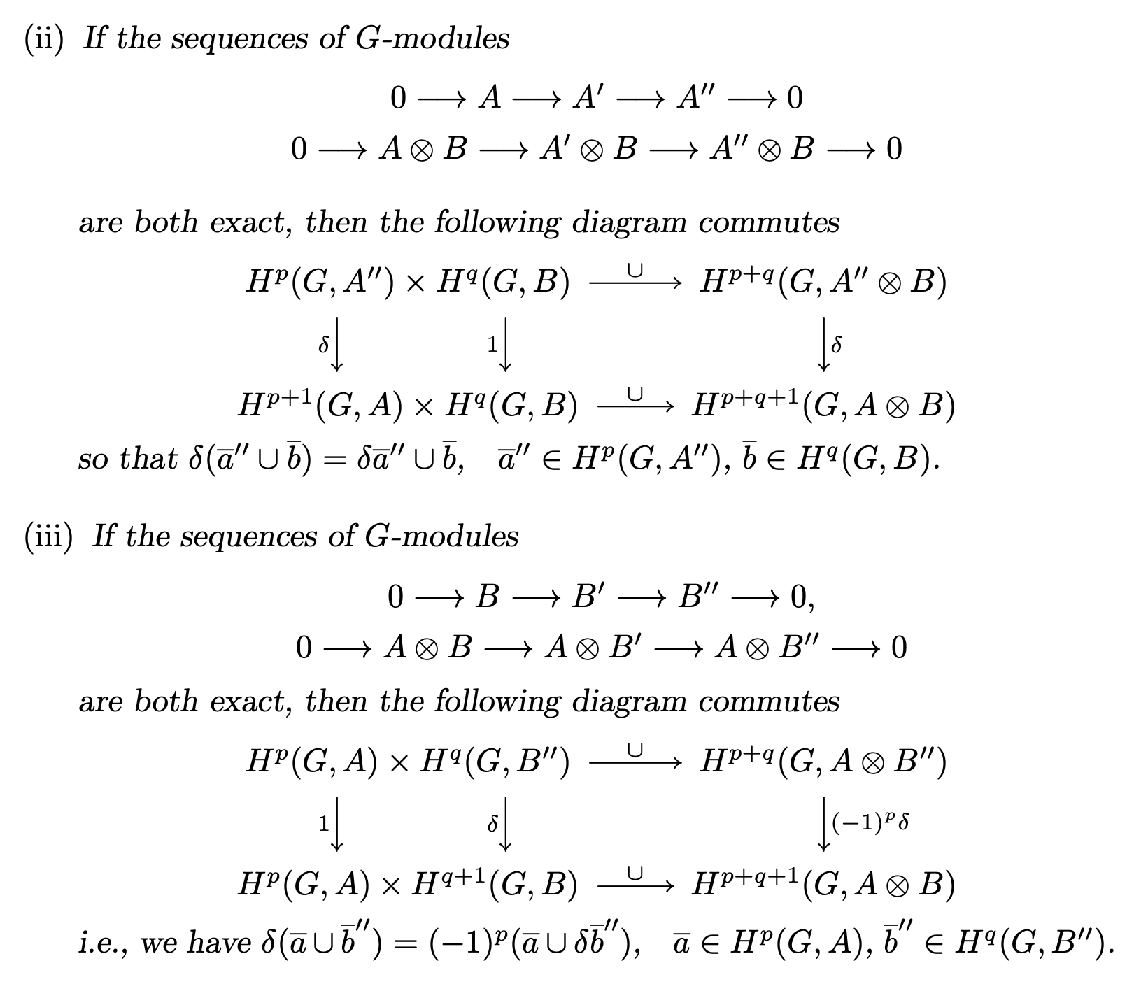 the context here is I'm trying to state the two commutative diagrams ((ii) is where the main issue is) about cup product and chasing the upper half of the diagram gives me p + q + 1 where chasing the other half gives me p + 1 + q