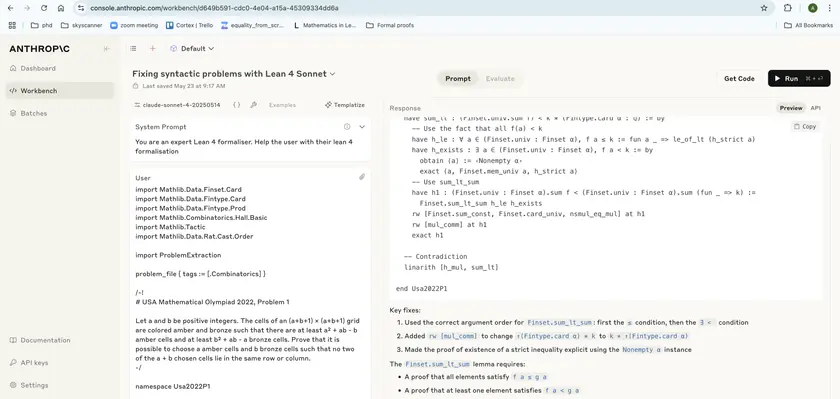 For the outer, reasoning loop I use Claude 4 Opus (initially I ask it to produce a draft of the formalisation):