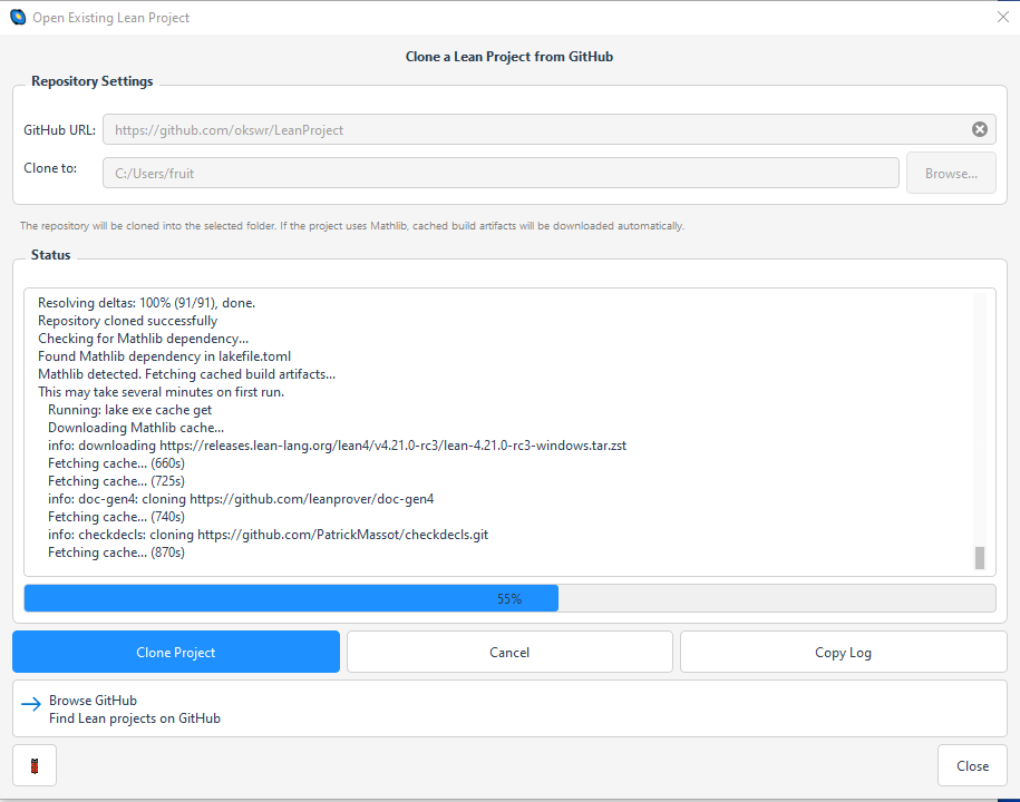 git clone https://github.com/leanprover-community/mathlib4work? How long does it take?