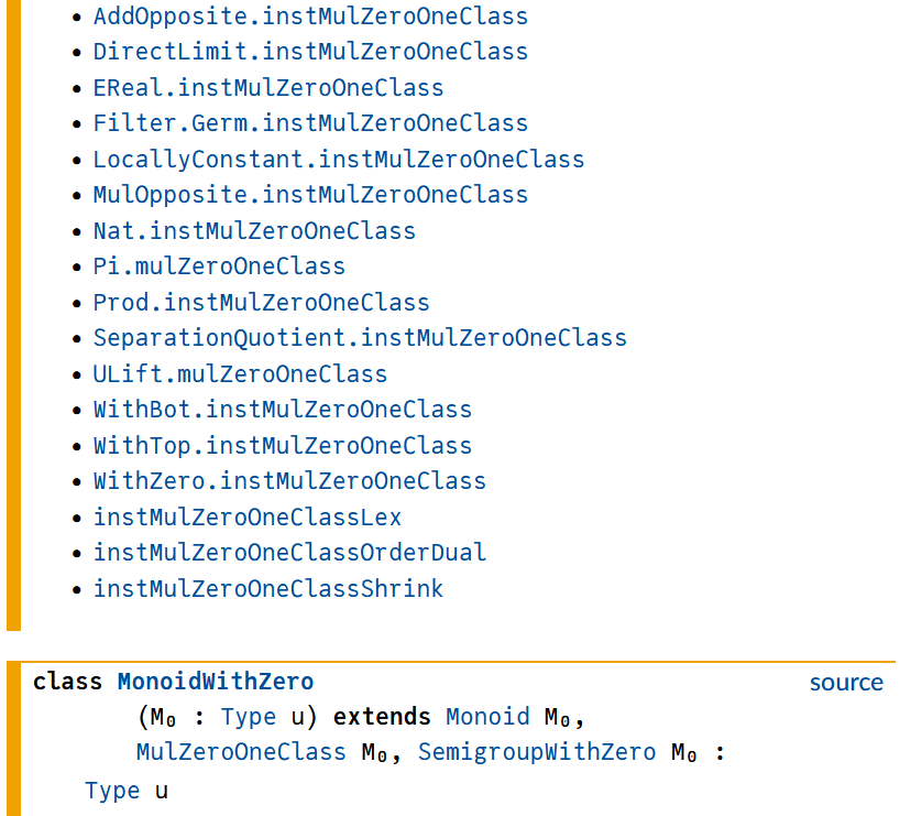 It seems the extends instances are just not shown, e.g. MonoidWithZero.toMulZeroOneClass here. Is this intentional?