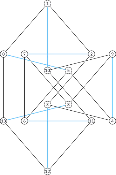 What is the distance of vertices 2 and 11 in your graph? If it is , it might be the essentially the same embedding you found compared to this one: