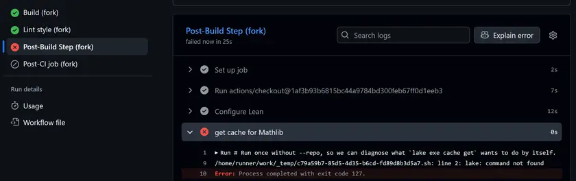 This looks like the previous step failed to install lake.
