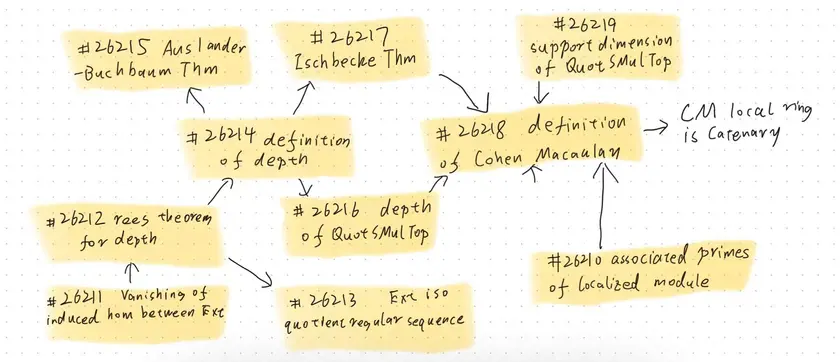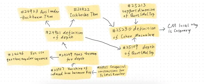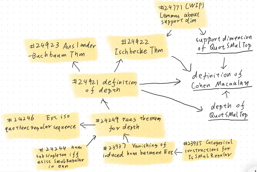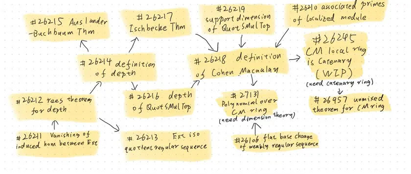 We would like to move forward to formalize regular local ring is CM, I would like to know is anybody still working on it. I would like to unify our definition, thanks.