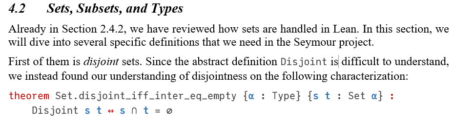 Hence I'm wondering if somebody else has already needed to review it before, so that I could copy the structure of the argument (with proper academic reference, of course) and just replace the code listings with the very version of Mathlib that I import.