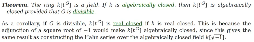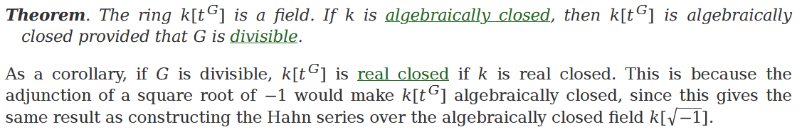 I need the result that for a real-closed field and a divisible group, the field of Hahn series is also real-closed