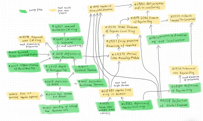 We are here to announce that we have proved every finitely generated module over regular local ring has finite projective dimension in #29534 via proving maximal Cohen Macaulay module over regular local ring is free in #29533.
