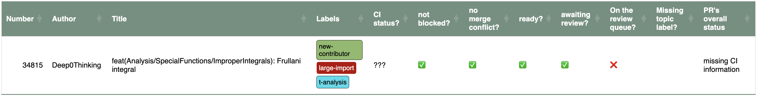 Screenshot of "missing CI information" on the queueboard