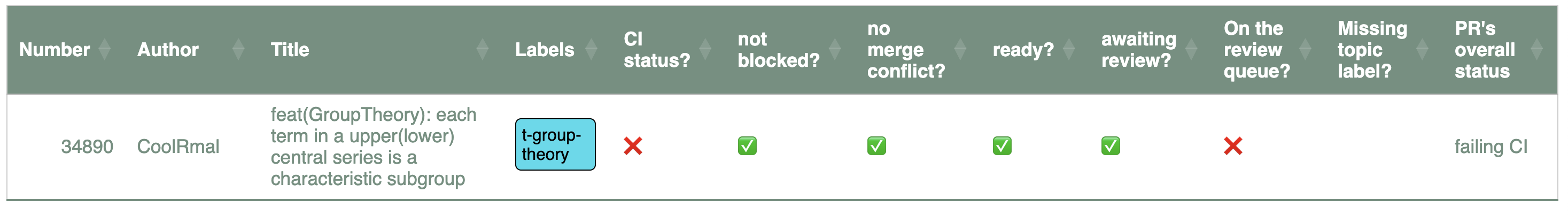 @Bryan Gin-ge Chen It looks like #35408 is missing from the queueboard. The "why is my PR not there?" page shows "???" under "CI status", even though CI is green.