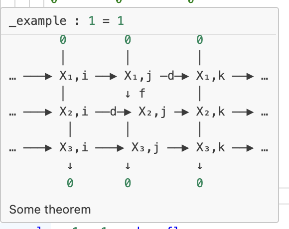 - Infoview hovers already support MathJax, and MathJax supports AMScd. It's unfortunately a very limited package, but e.g. hovering on