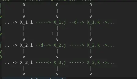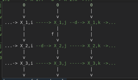 … ───▶ X₁,i ──▶ X₁,j ─d─▶ X₁,k ──▶ …